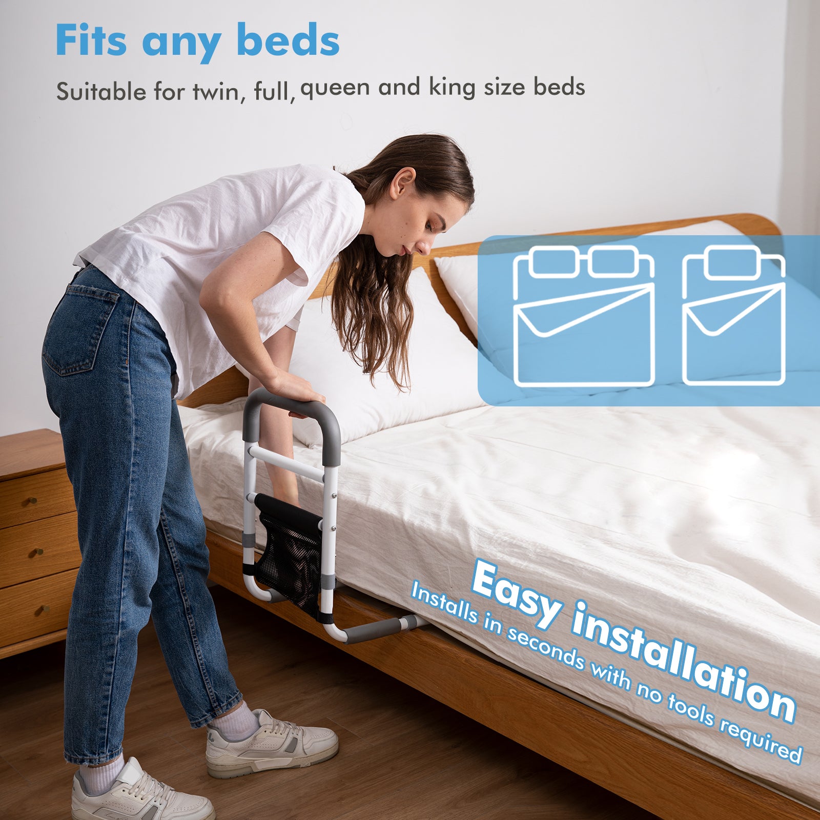 - FIT ALL BED: Fits any size bed (King, Queen, Full, Twin) and the height of the bed assist rail can be adjusted from 18.8" to 21.5"