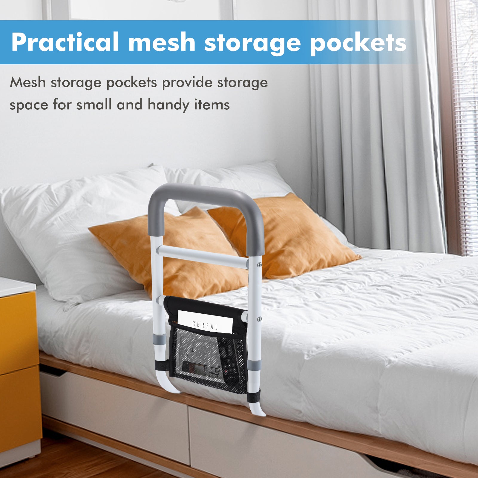 - NON-SLIP HANDRAILl: The bed assist rail is padded with soft, non-slip foam provide a comfortable and secure grip and the mesh pocket offers handy storage.