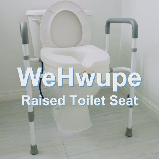 WeHwupe Raised Toilet Seat with Handles for Elderly - Toilet Seat Risers for Seniors with Adjustable Padded Arms - Elevated Toilet Safety Seat for Standard or Elongated Commode