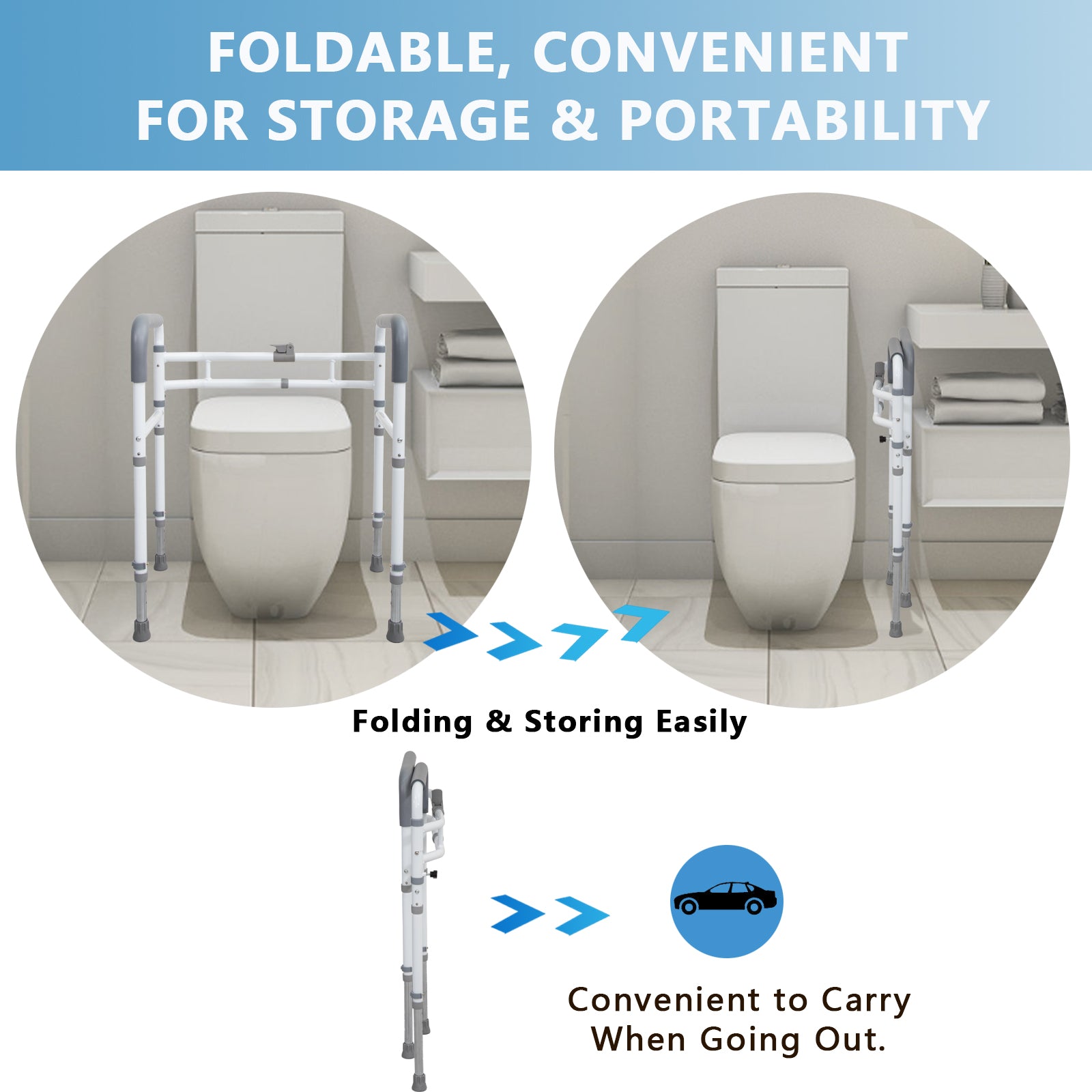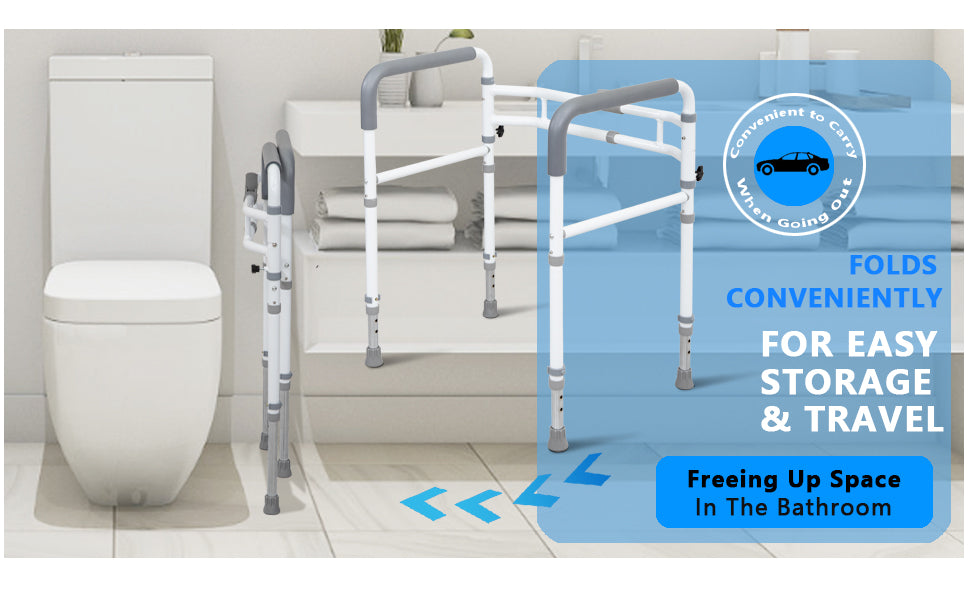 - SUPPORT SAFETY: WeHwupe toilet support rails is great for seniors,prevent slips in the barthroom and Non-slip feet for stability. Strong frame can hold up to 350lbs.